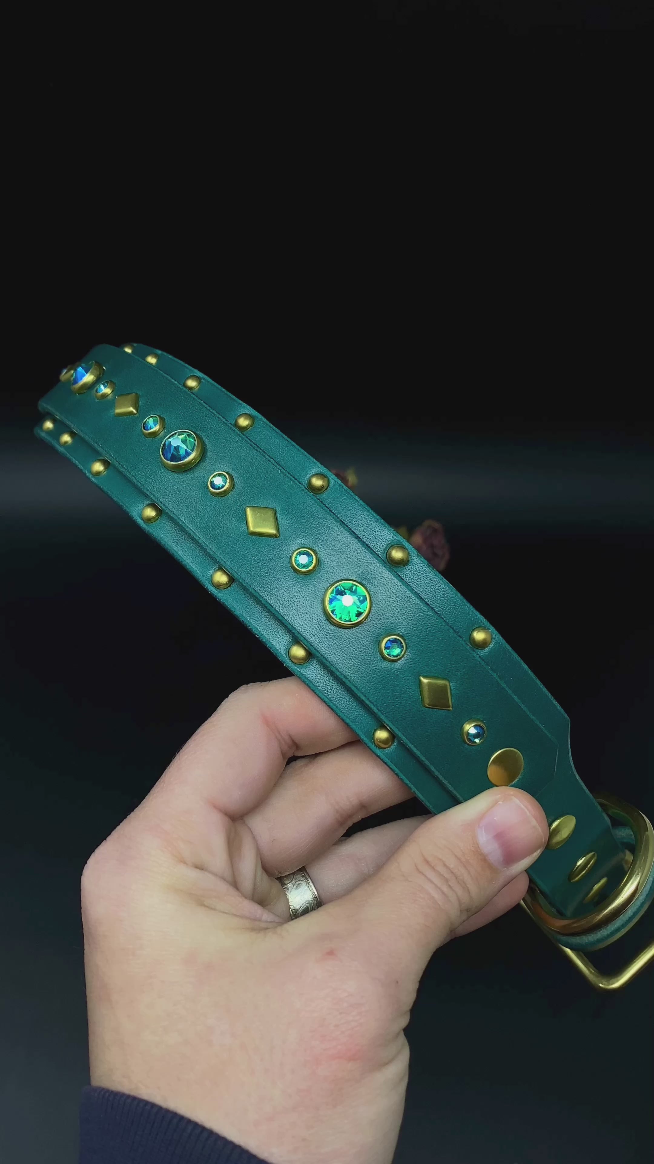 The Reina collar is available with a 1"-width design panel and as single or double layer collar.