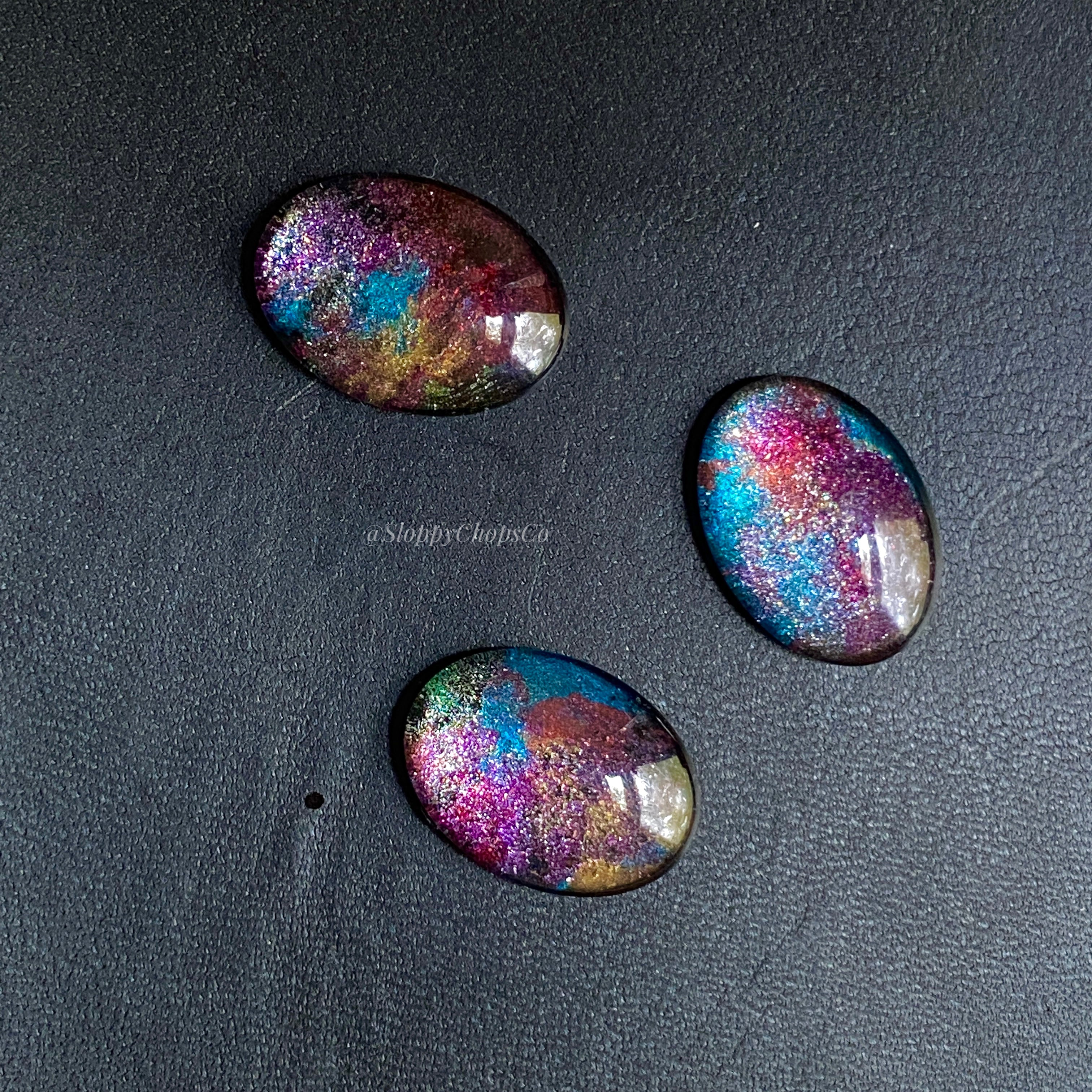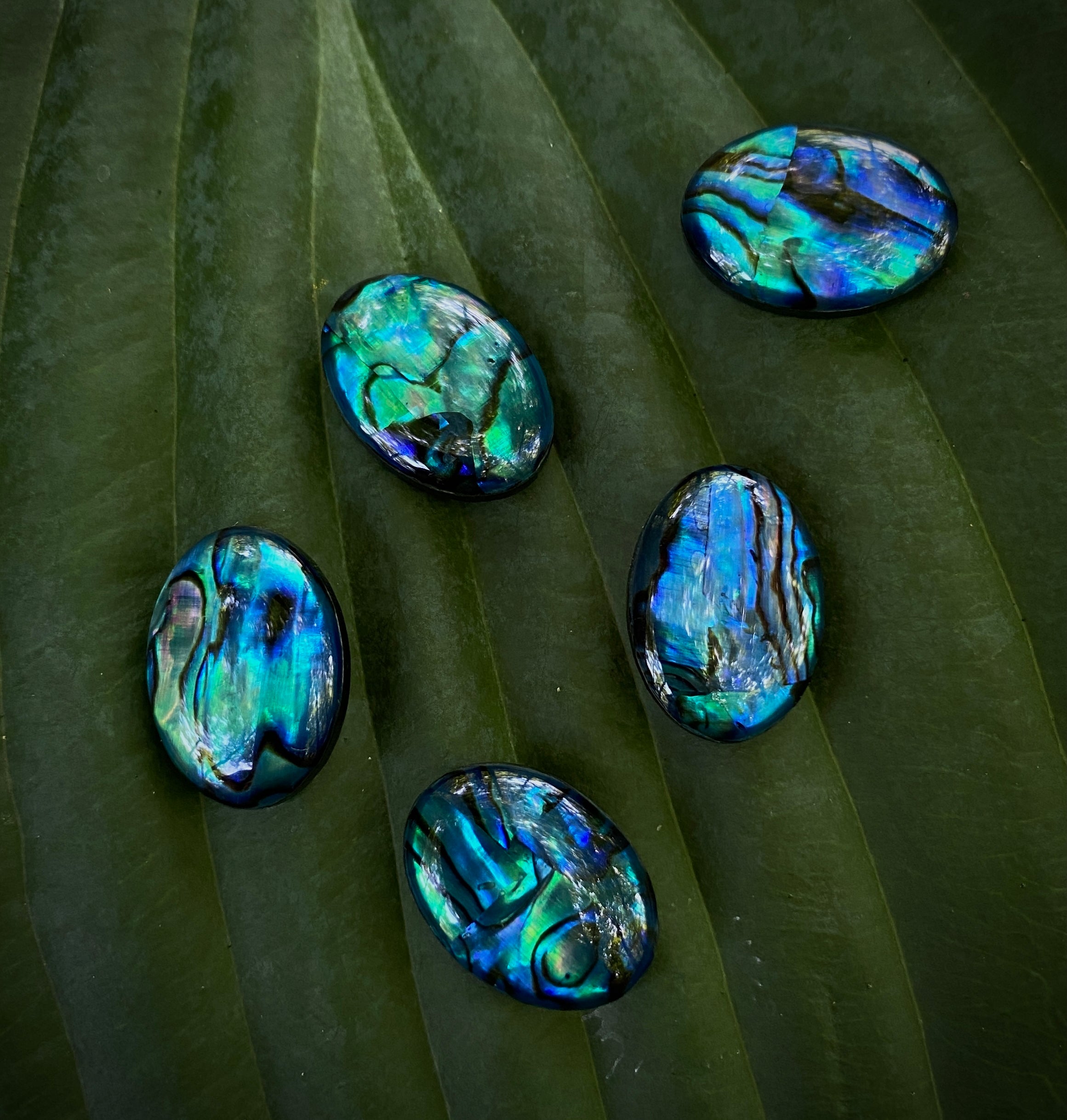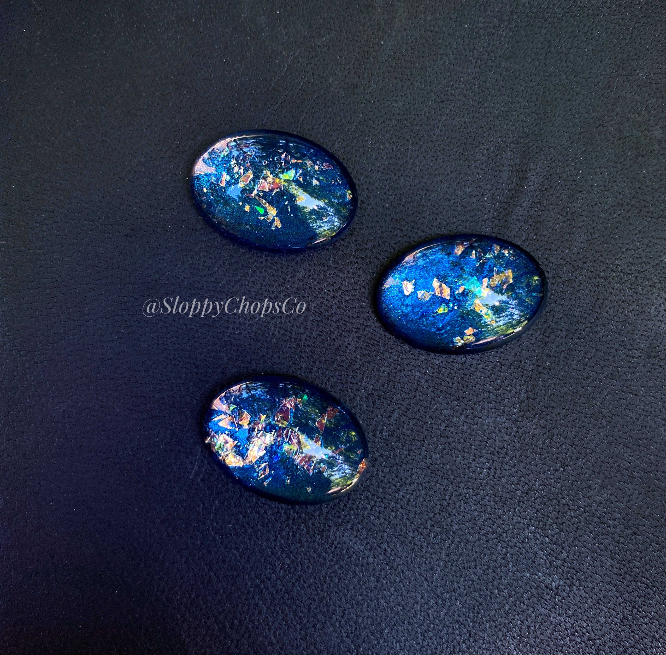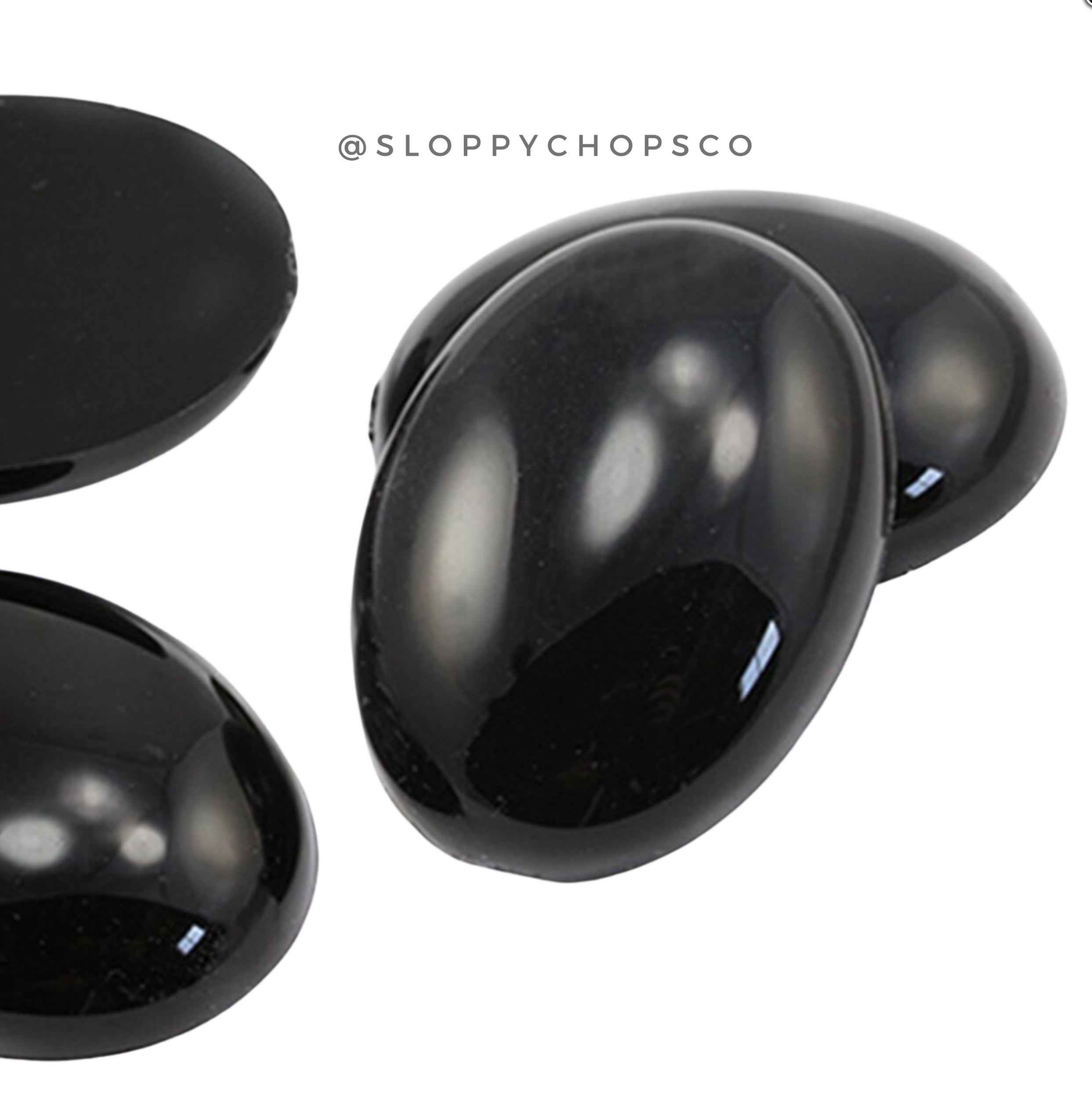 The term 'cabochon' simply refers to a smooth, non-faceted stone, most typically with a flat back and oval in shape. They may be either natural gemstones or man-made. Due to the large variance in materials, the Moh's hardness of each cabochon will vary. As our cabochons are either handmade or made by mother nature, each one is one-of-a-kind, and color & pattern variation is to be expected.
