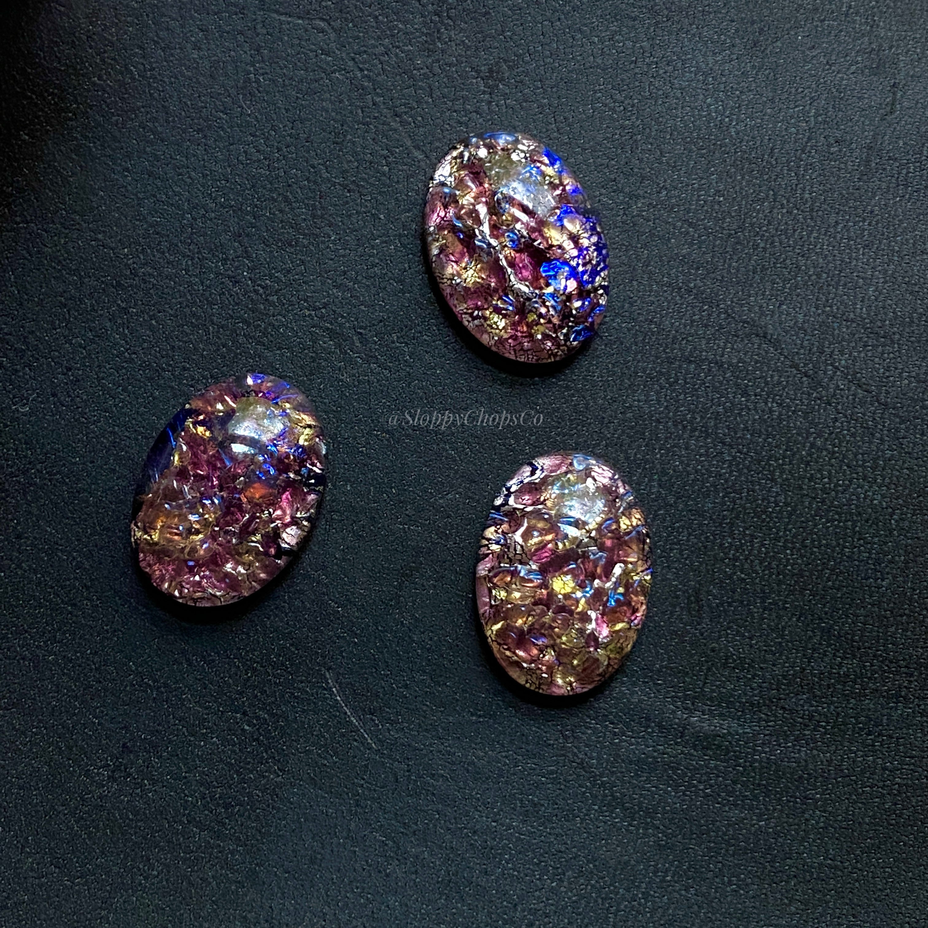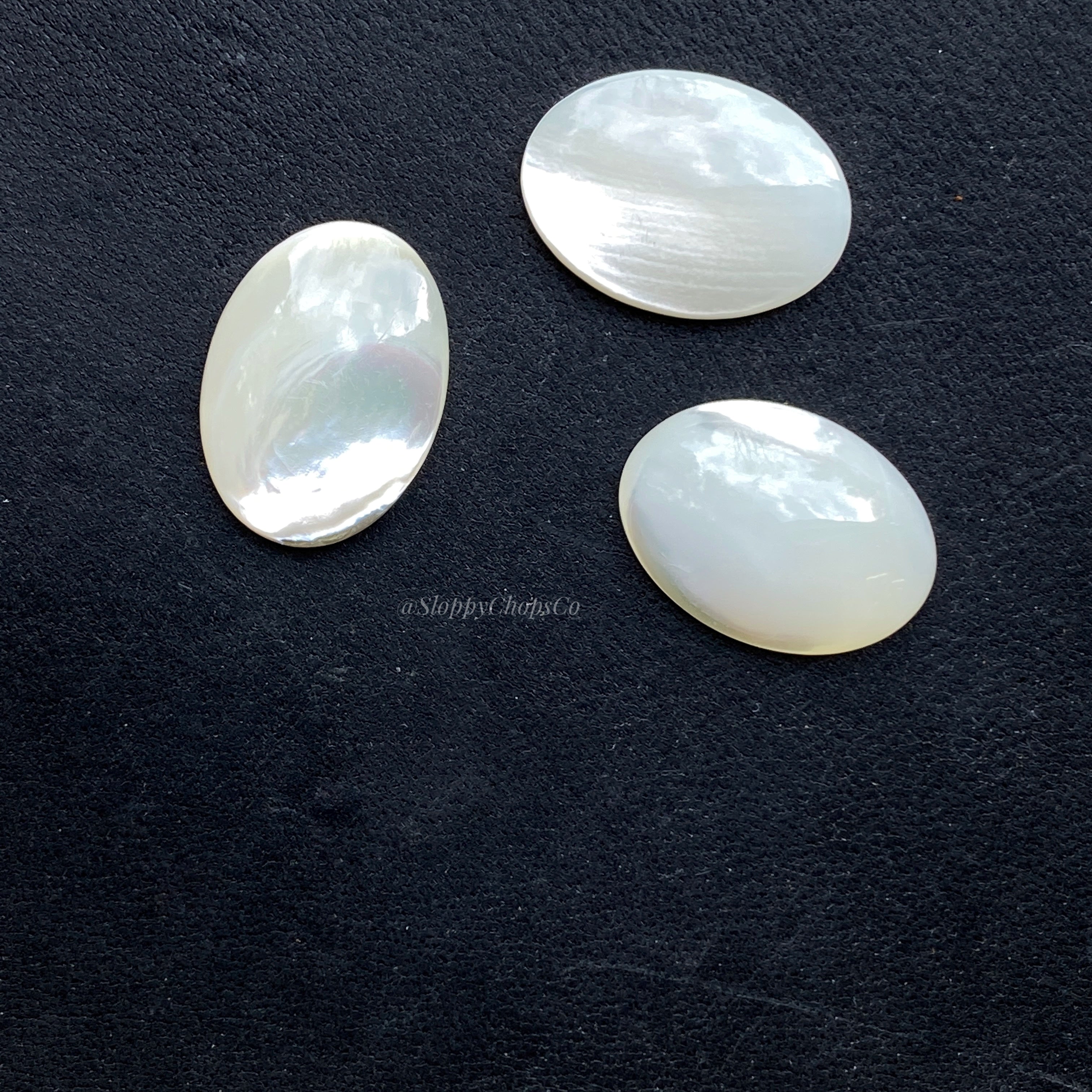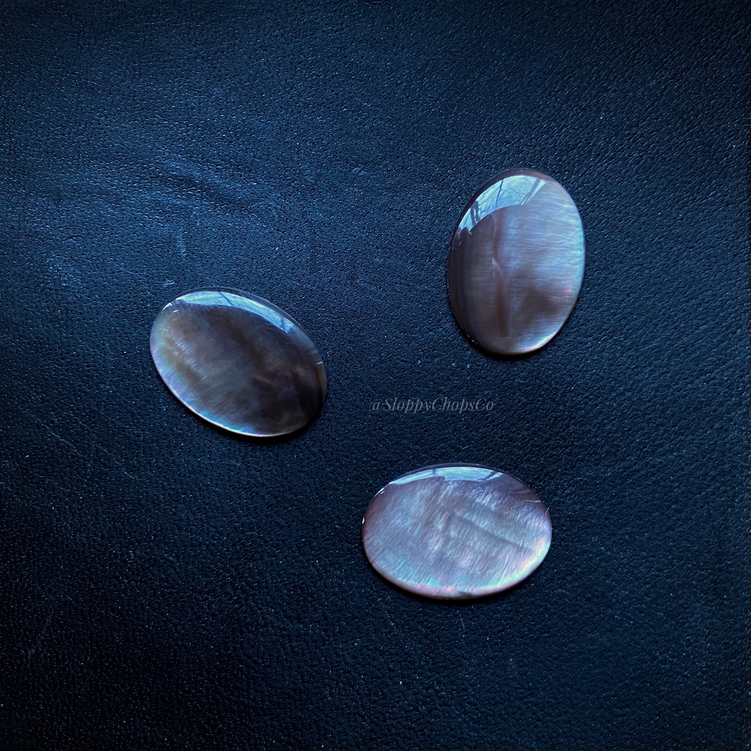 The term 'cabochon' simply refers to a smooth, non-faceted stone, most typically with a flat back and oval in shape. They may be either natural gemstones or man-made. Due to the large variance in materials, the Moh's hardness of each cabochon will vary. As our cabochons are either handmade or made by mother nature, each one is one-of-a-kind, and color & pattern variation is to be expected.