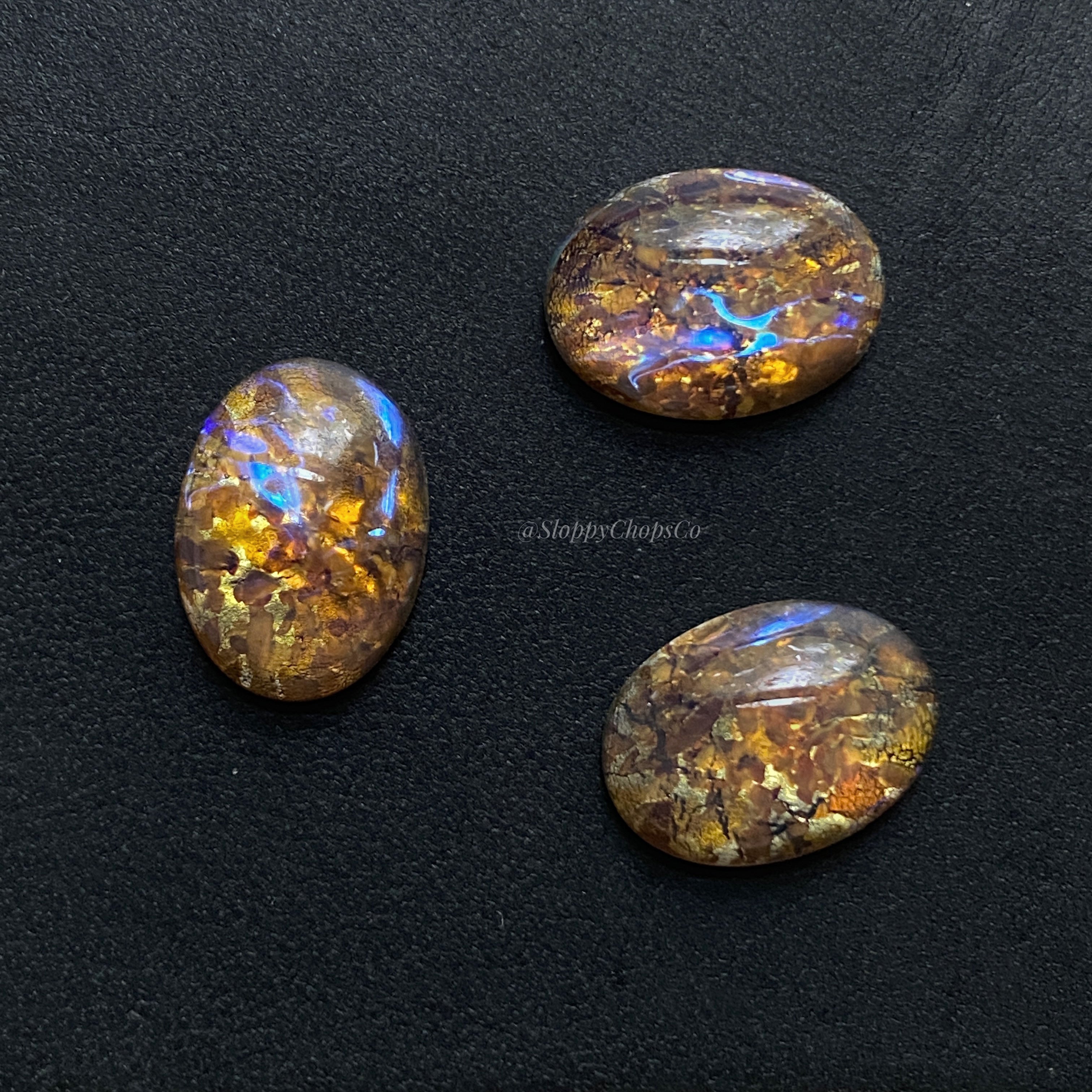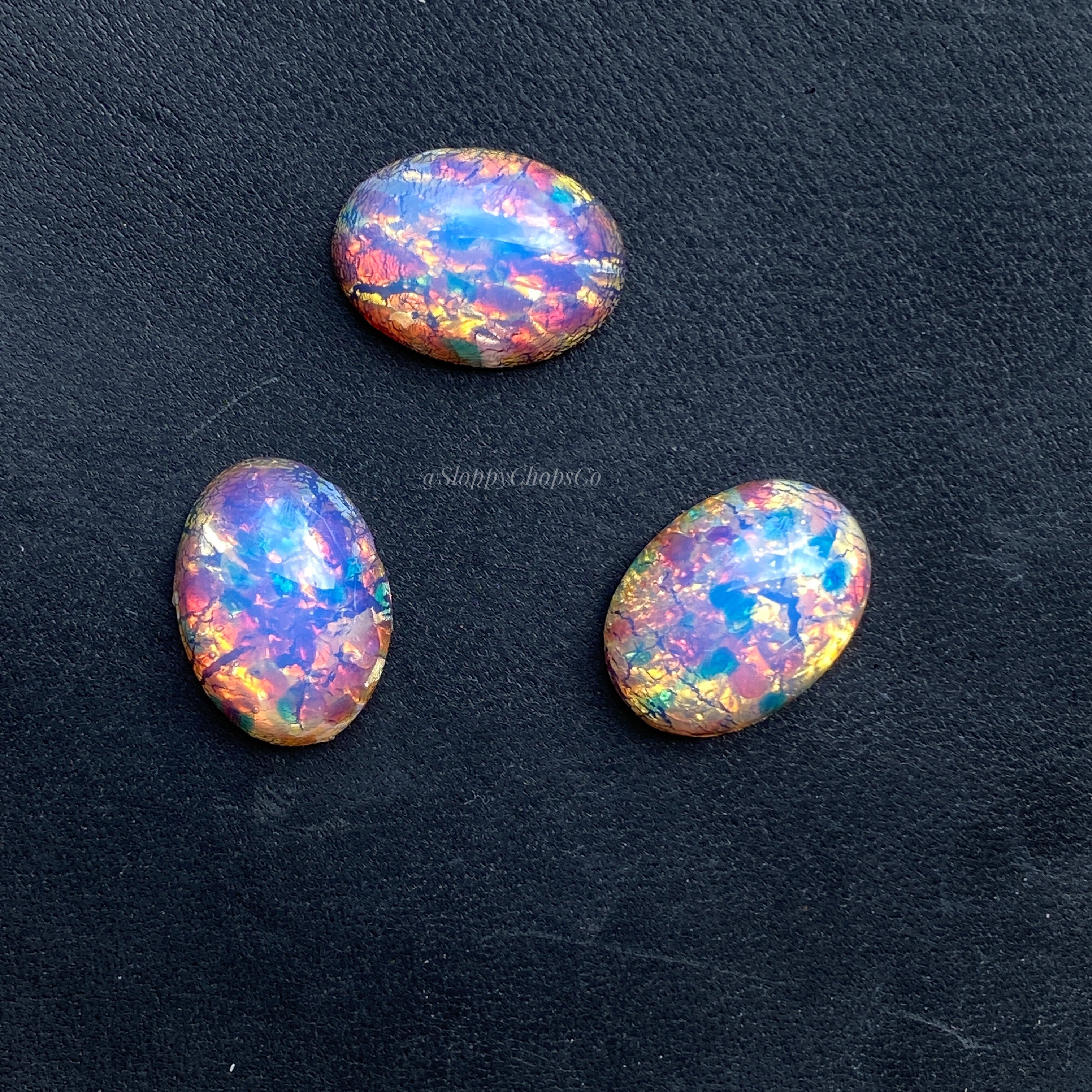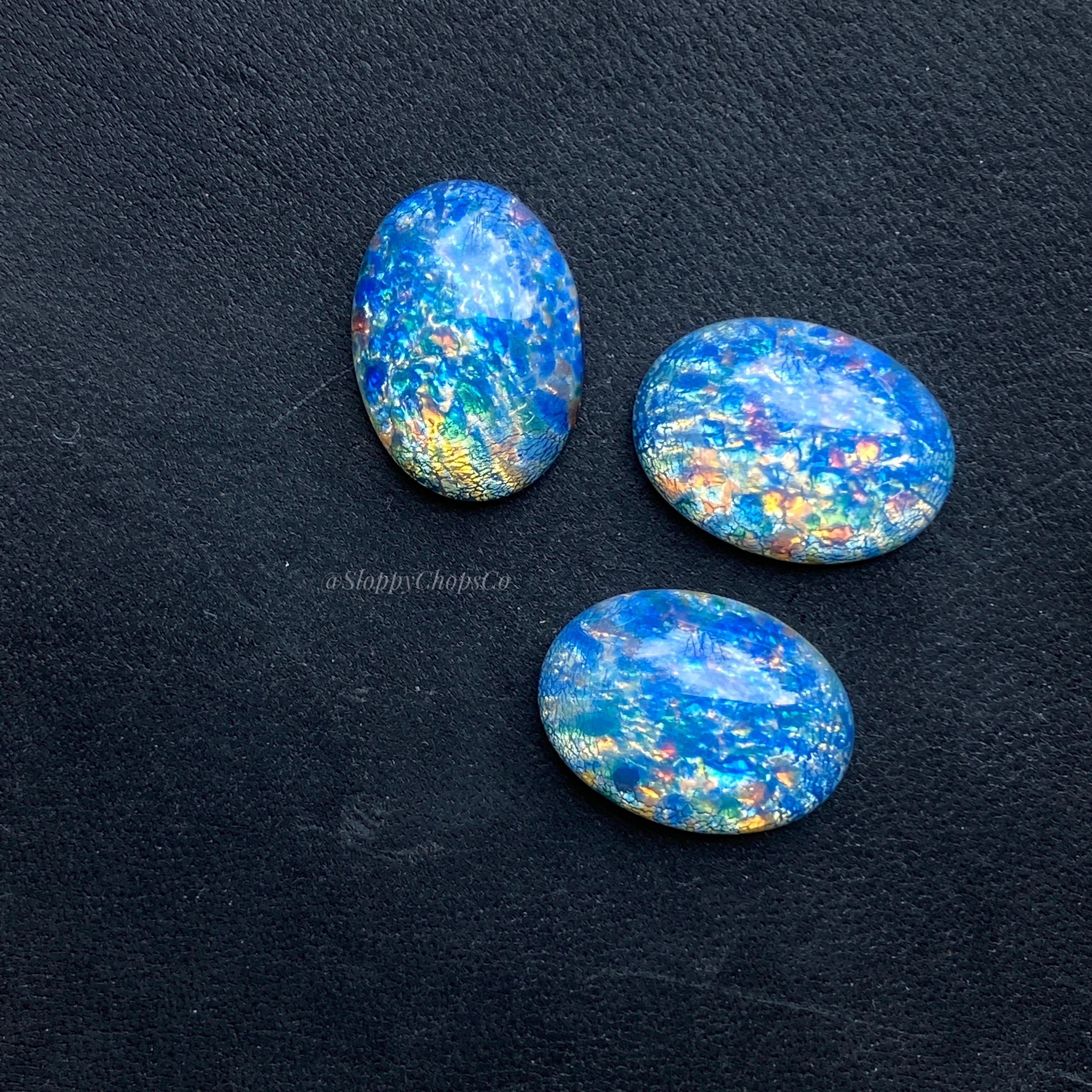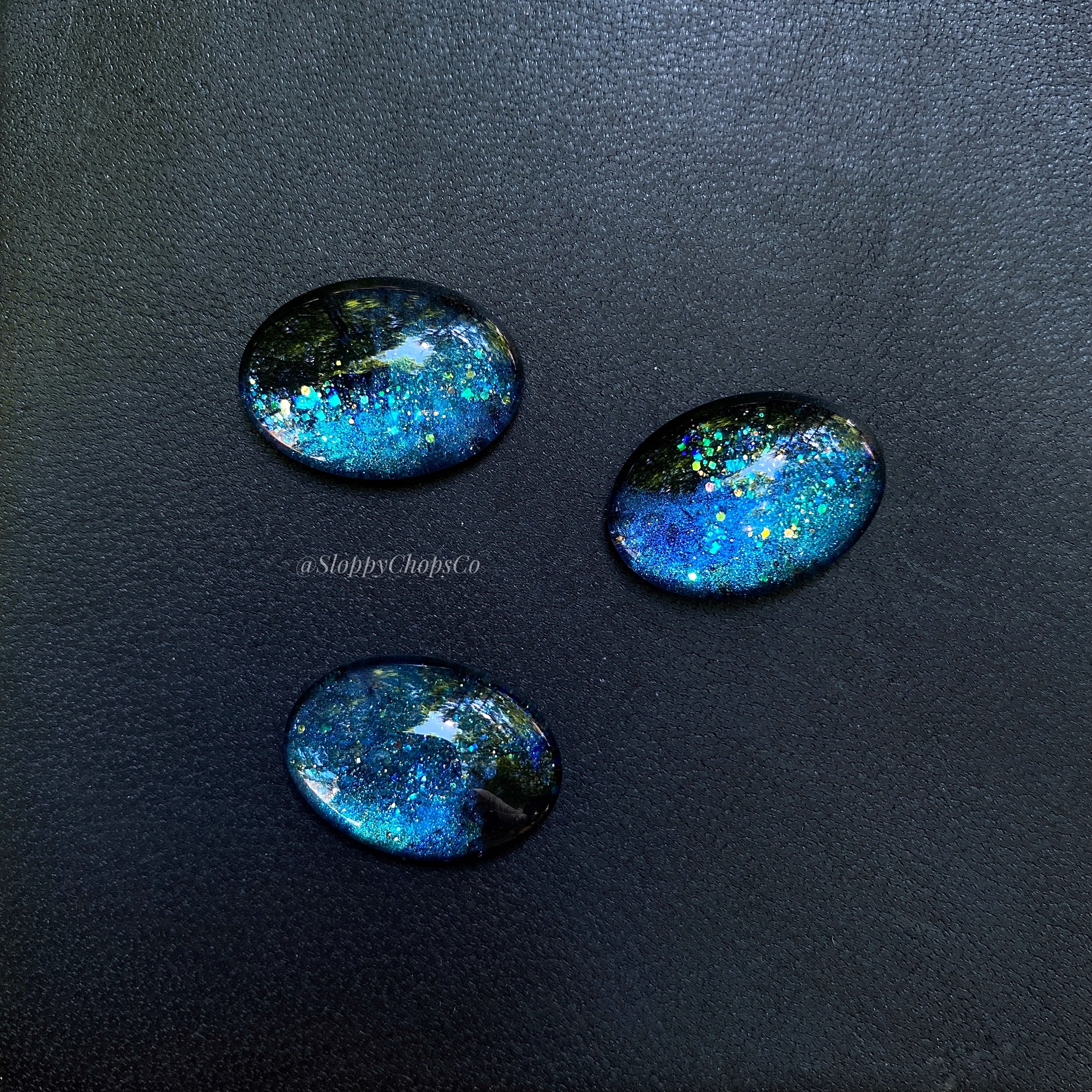 The term 'cabochon' simply refers to a smooth, non-faceted stone, most typically with a flat back and oval in shape. They may be either natural gemstones or man-made. Due to the large variance in materials, the Moh's hardness of each cabochon will vary. As our cabochons are either handmade or made by mother nature, each one is one-of-a-kind, and color & pattern variation is to be expected.