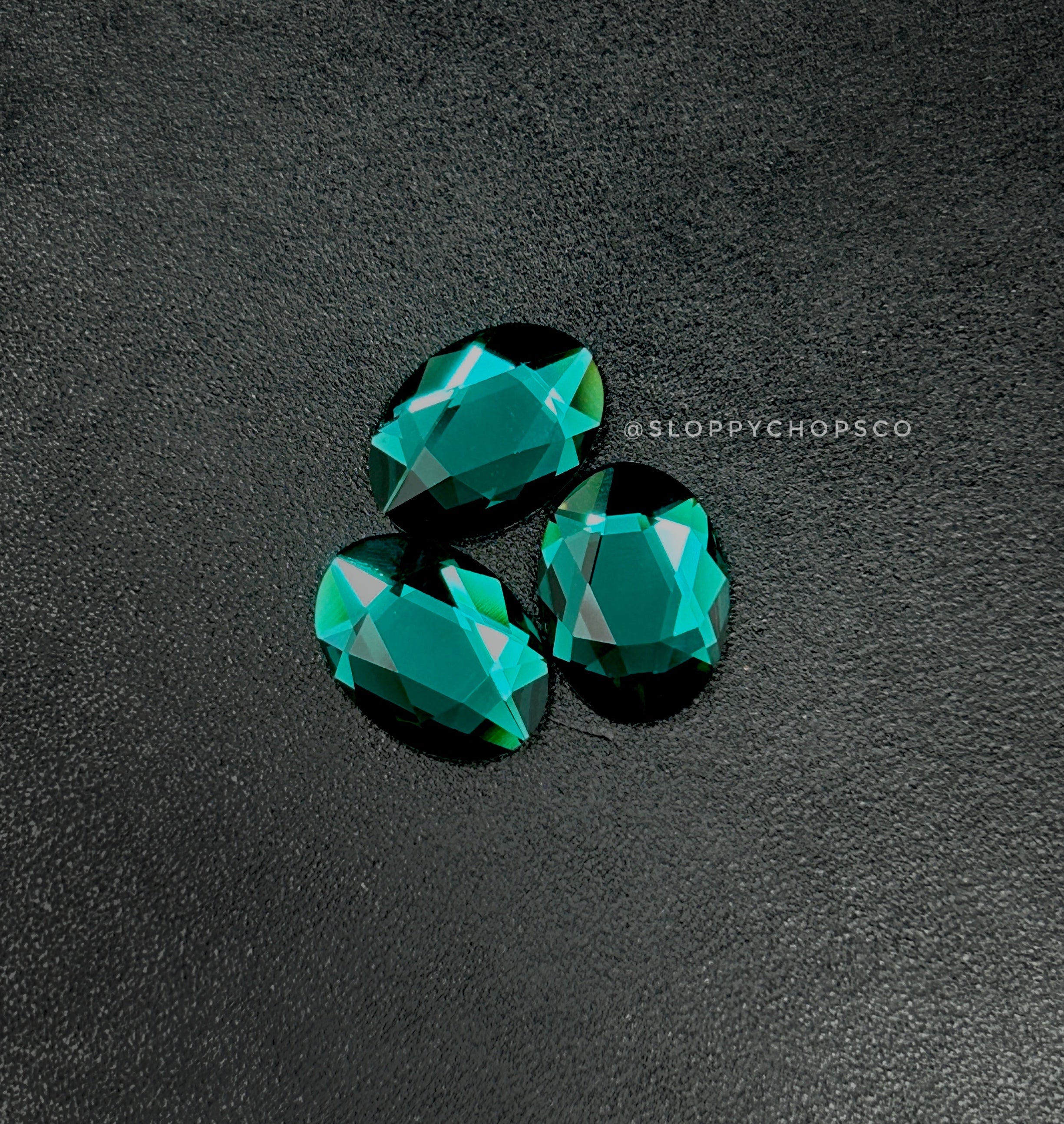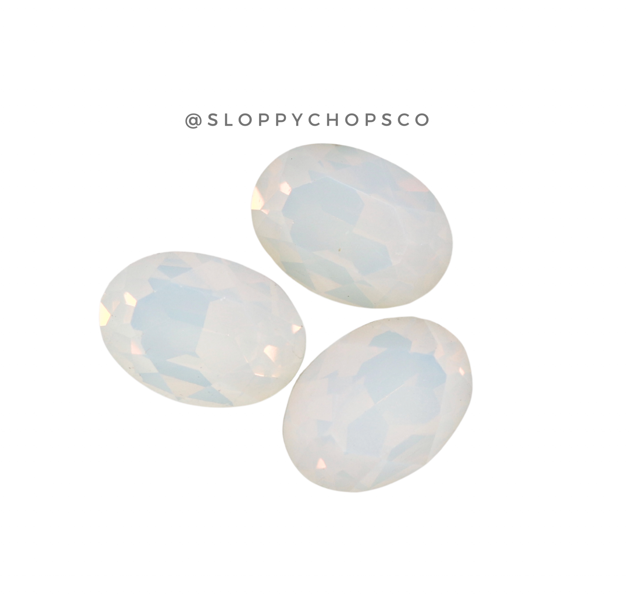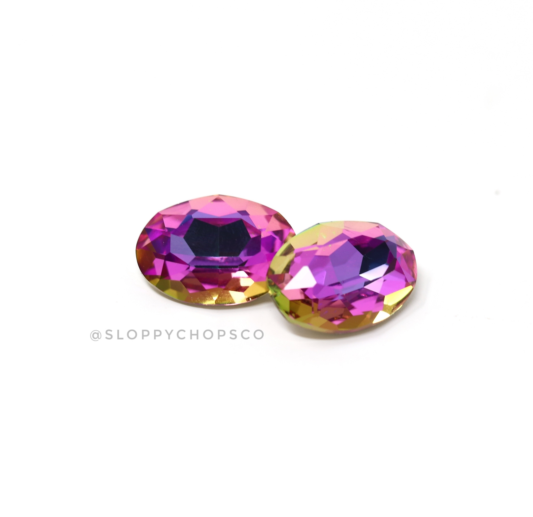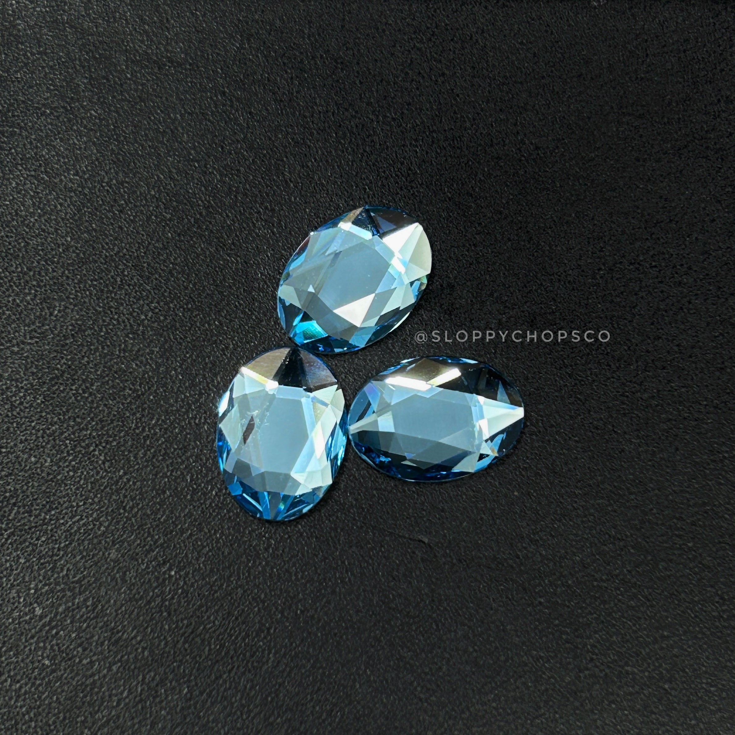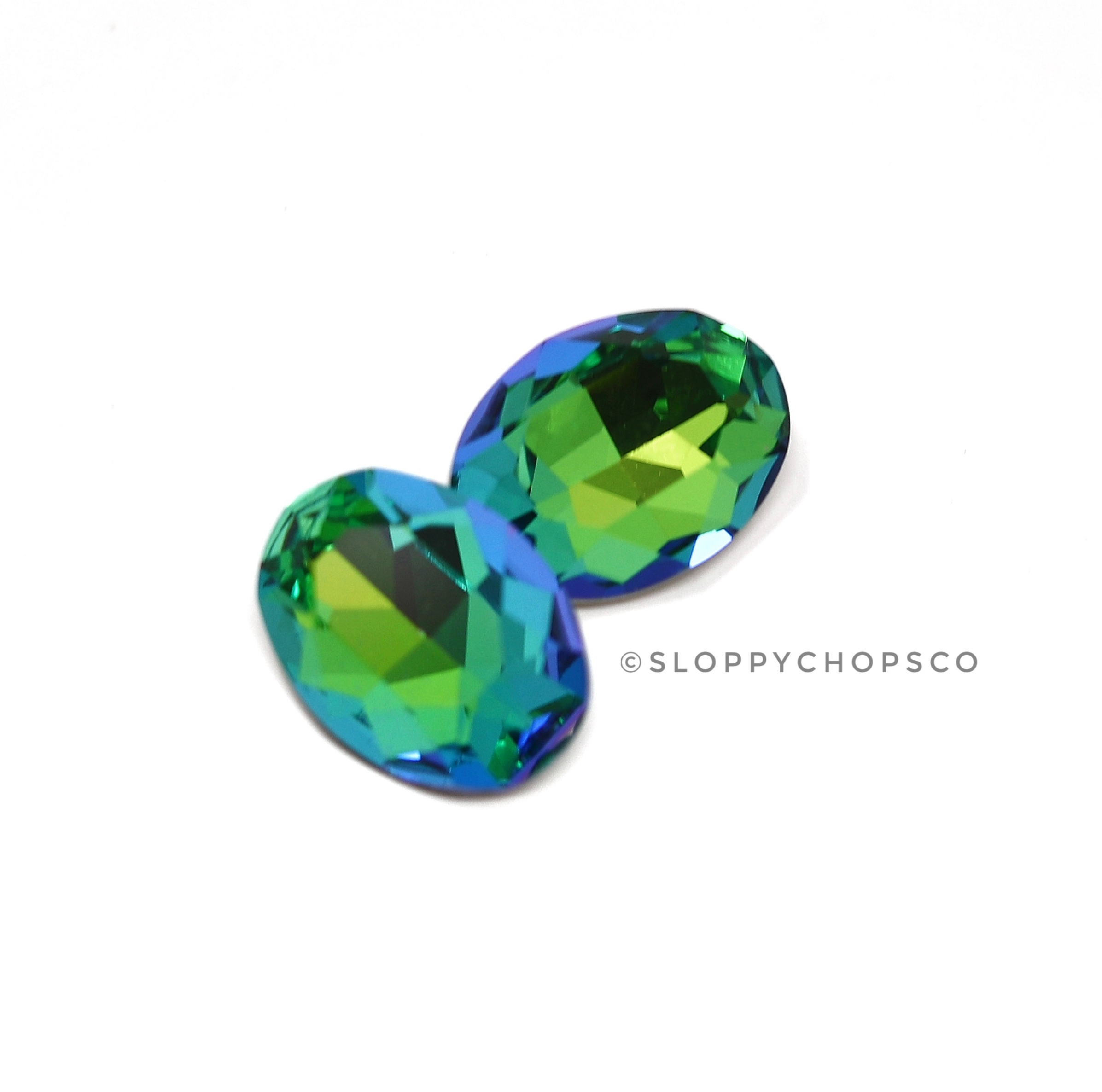 Fancy Ovals refer to large, faceted crystals that are oval in shape and have pointed backs. These are man-made and from the same manufacturers that supply our crystals.