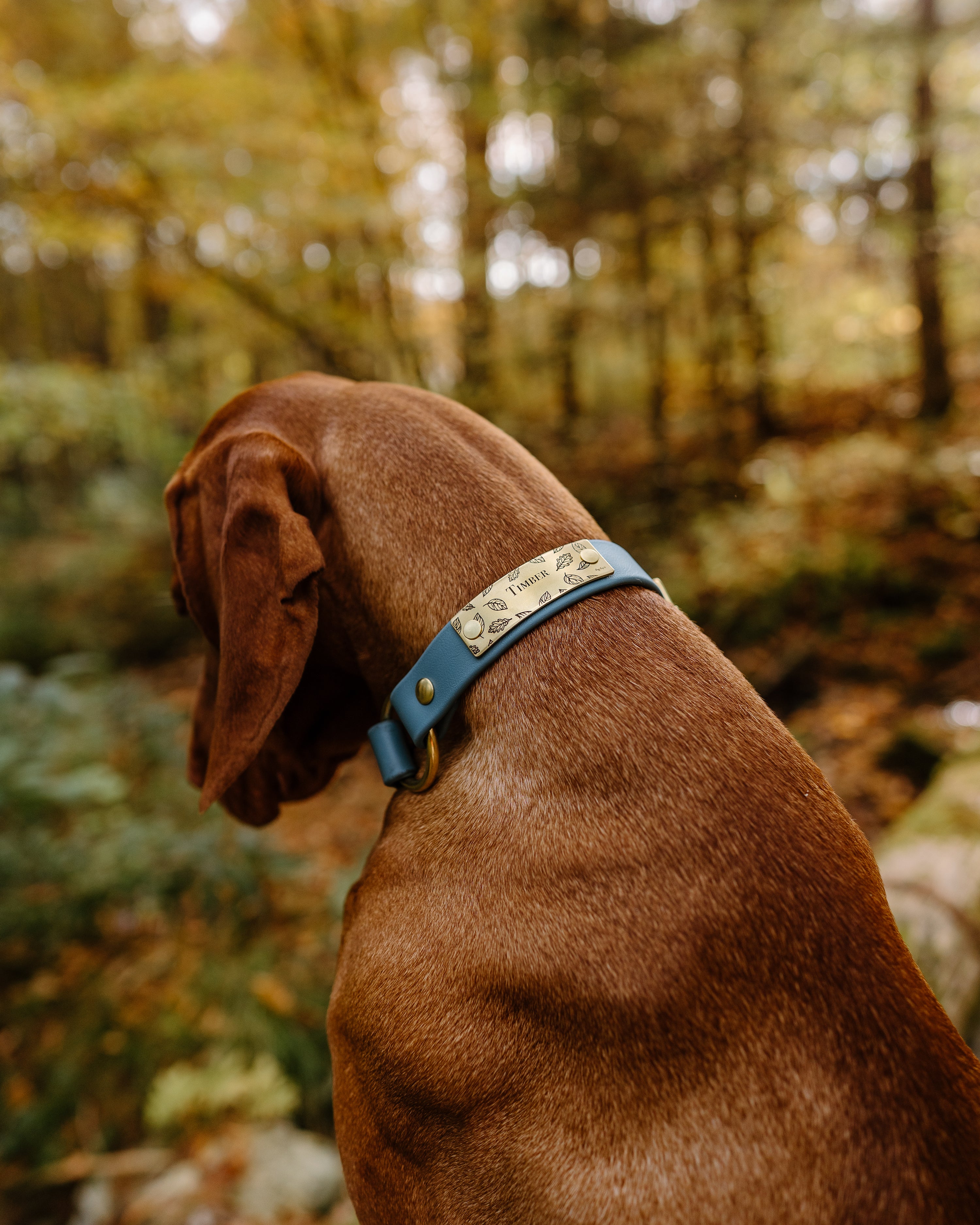 Because we care about the small details, every collar also comes permanently inscribed with the shop name on the underside of the collar; so you don't always have to tell the whole world where you got your collar from, but you'll know you bought quality, artisanal goods.